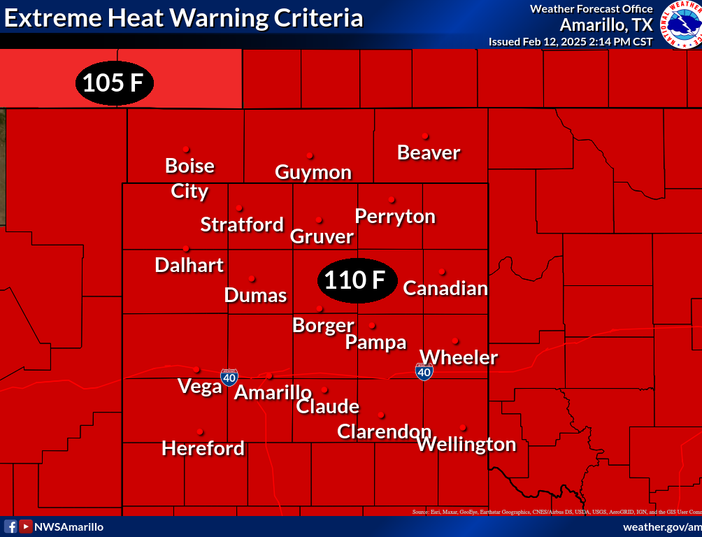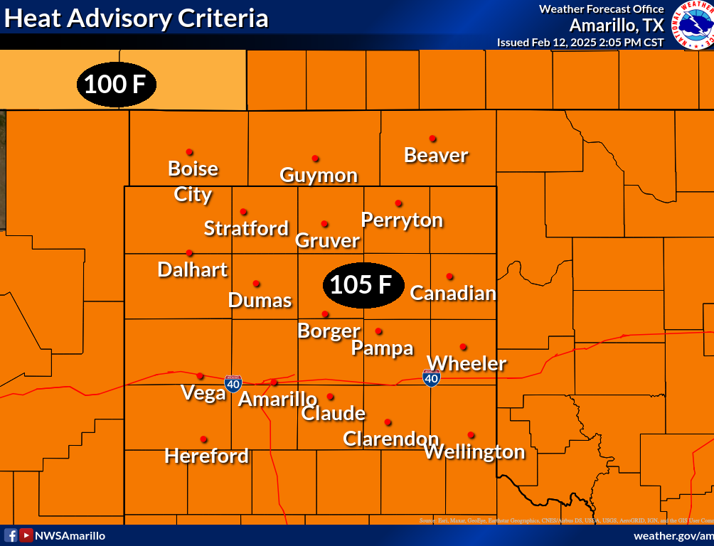 National Weather Service criteria for issuing heat-related products varies from region to region, is based on climatology of peak heat experienced, and adjusted in some areas due to public and core partner needs. Listed below are the heat-related products and their issuance criteria for the NWS Amarillo Weather Forecast Office: