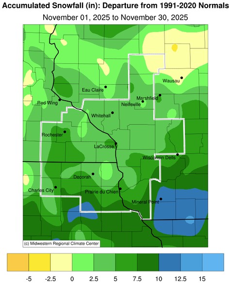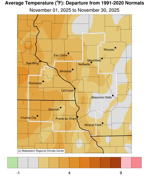 November 2025 was Warmer and Drier than Normal for La Crosse, WI
