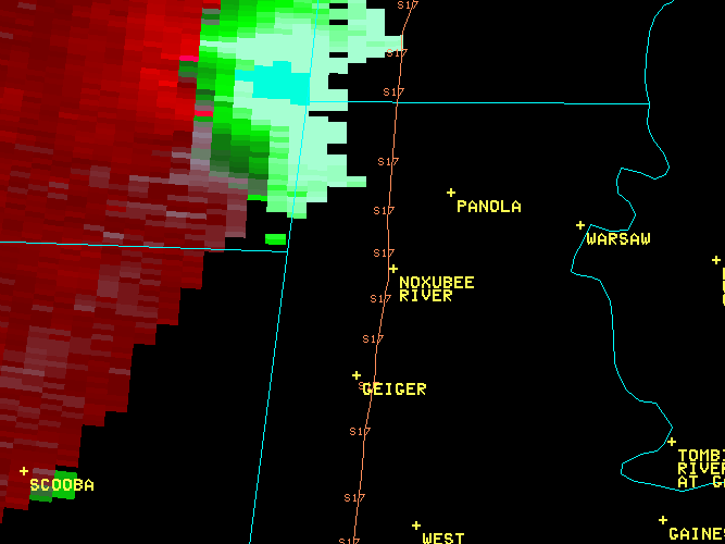 National Weather Service meteorologists from Jackson, Mississippi and Birmingham, Alabama surveyed a tornado track that came out of Mississippi. A tornado developed along a Quasi-Linear Convective System and touched down in Kemper County Mississippi, then tracked northeast through Noxubee County before crossing into Pickens County, southwest of Dancy. The tornado weakened to an EF1 rating as it entered Alabama, with winds of 100 mph. As the tornado moved across AL Hwy 17 near Dancy, a barn with metal siding and roofing and two small silos were destroyed. Significant tree damage was noted along CR 85. The tornado crossed the Tombigbee River and moved parallel to CR 13. The tornado crossed AL Hwy 14 south of Aliceville, where it damaged a farm irrigation system. The tornado continued northeast and lifted near Hamilton Jr Craft Rd, northwest of Benevola. Dozens of trees were also downed along this path.