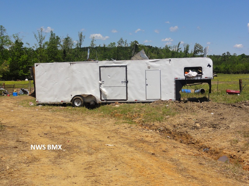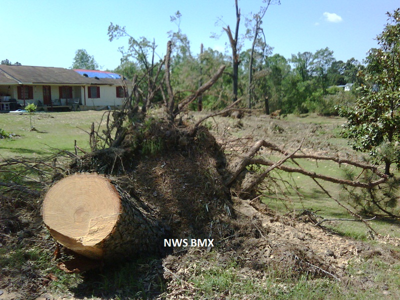 This tornado continued for almost 19 miles in Tuscaloosa County before it dissipated 2.5 miles east northeast of Samantha. As the tornado entered Tuscaloosa County and crossed US Hwy 82, its path widened to near 400 yds and it strengthened to an EF2 where it uprooted numerous trees. Northeast of Holman, the tornado strengthened to an EF3 with winds of 140 mph and caused significant damage to a home. It removed the roof and tossed it at least 200 yds. A 3500 pound trailer was thrown about 100 yds. The tornado continued northeast where it crossed AL Hwy 171 and US Hwy 43. Thousands of trees were snapped or uprooted and many homes sustained damage due to the fallen trees. In addition, at least 3 outbuildings sustained damage or were destroyed. The tornado tracked south of Samantha and dissipated along North Hagler Rd.