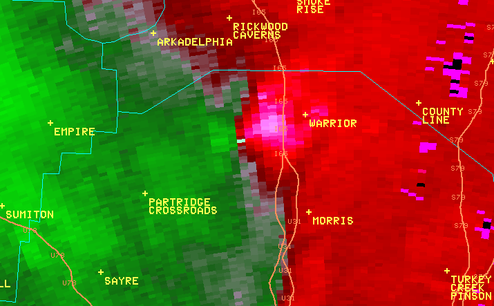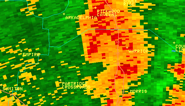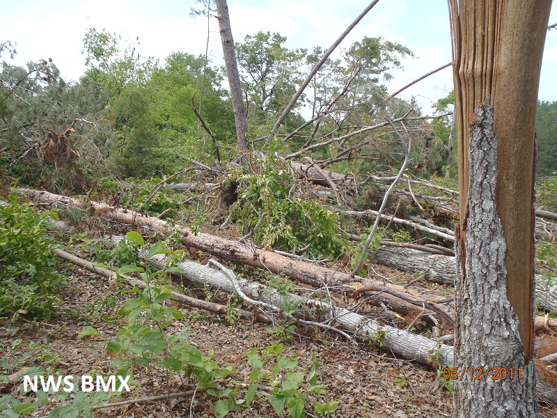 National Weather Service meteorologists surveyed damage across far northeast Jefferson County and southern Blount County. It has been determined that the damage was consistent with a tornado. Winds were estimated at 135 mph. A tornado developed along a Quasi-Linear Convective System. It touched down in far northern Jefferson County, northeast of Warrior, and tracked northeastward into Blount County and across the western bank of Mountain Woods Lake before it lifted northeast of Sagefield Rd. The damage along the Jefferson County portion of the track was consistent with an EF1 rating with winds of 95 mph. The tornado touched down east of Old Hayden Rd, and tracked northeast where it downed dozens of trees along Mabel Dr. This resulted in damage to several homes. The tornado moved into Blount County near Sibleyville Rd.