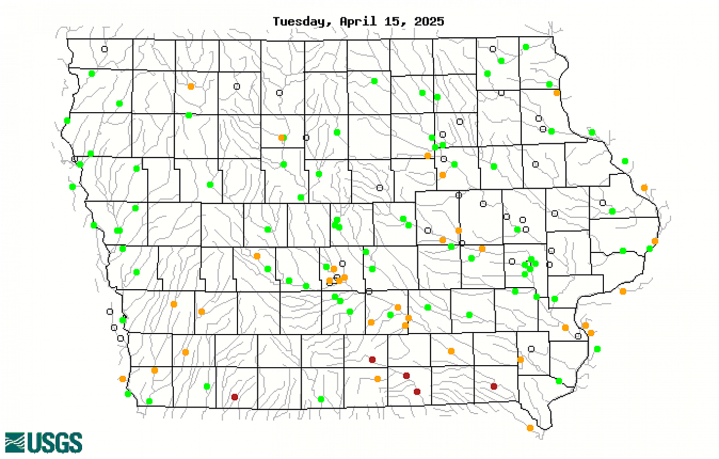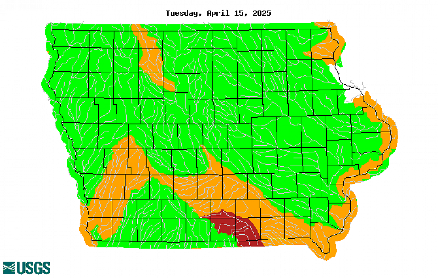 | USGS Iowa Streamflow Index (1-Day) | USGS Iowa Streamflow Percent Summary (1-Day) Table of Categories/Percentages (1-Day) |