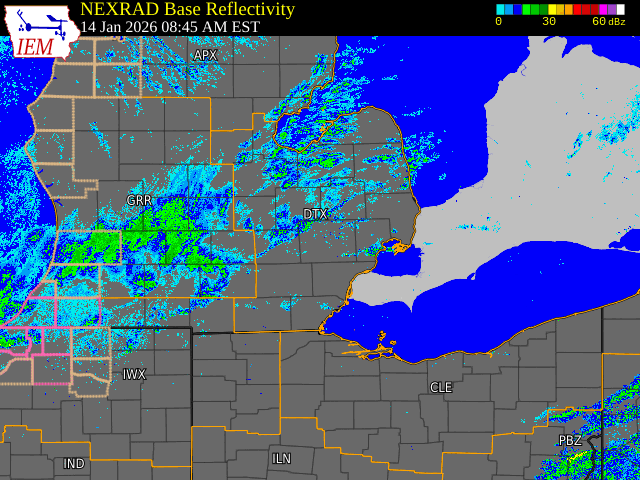 Radar: NEXRAD mosaic base reflectivity radar loop from January 14-15, 2026 |