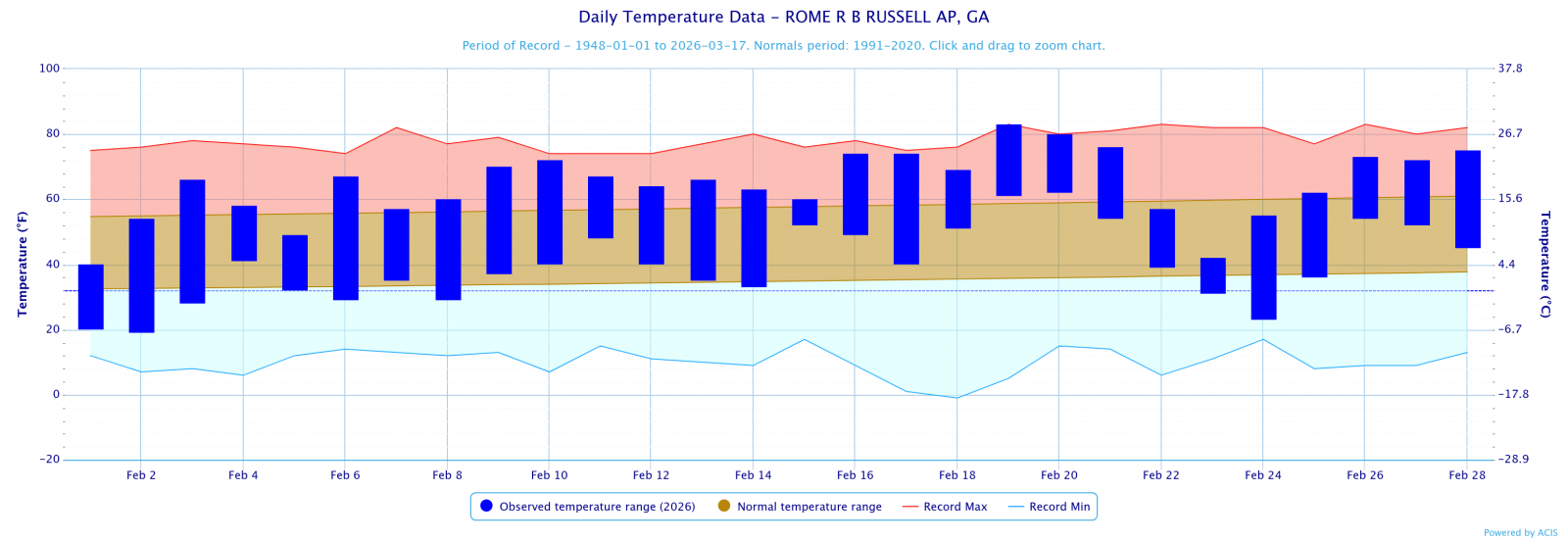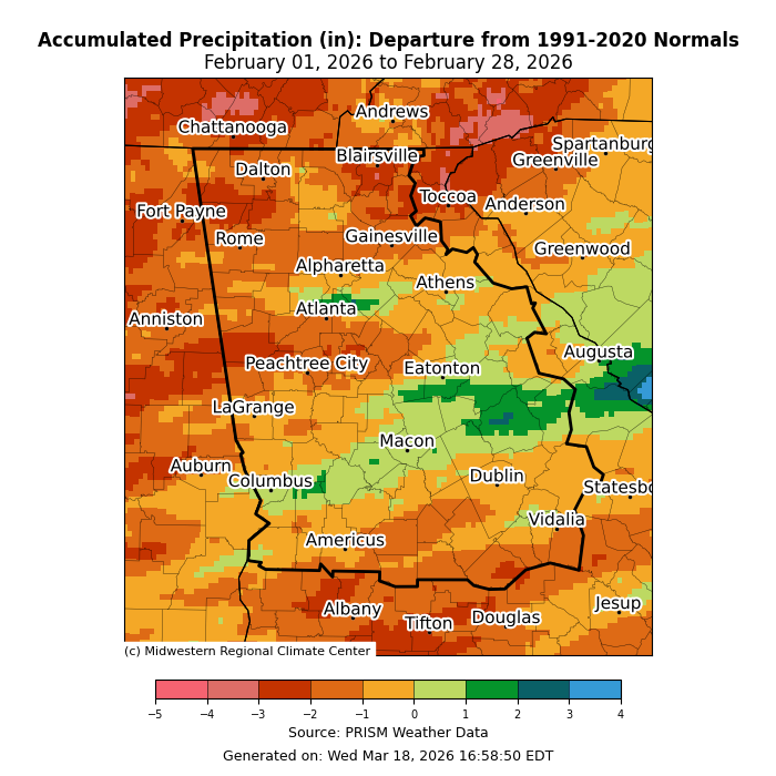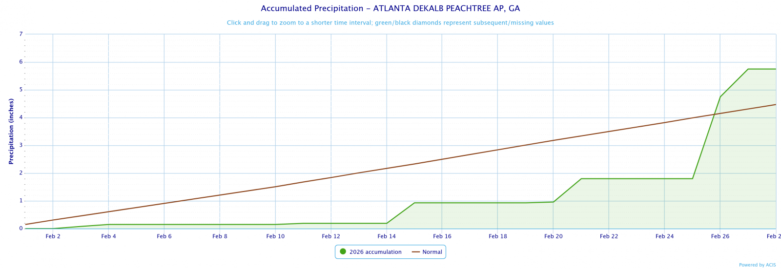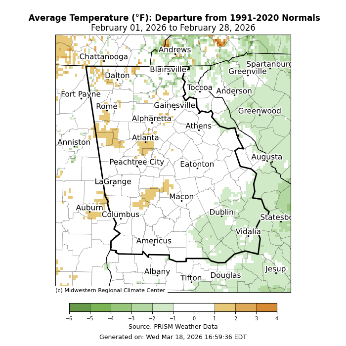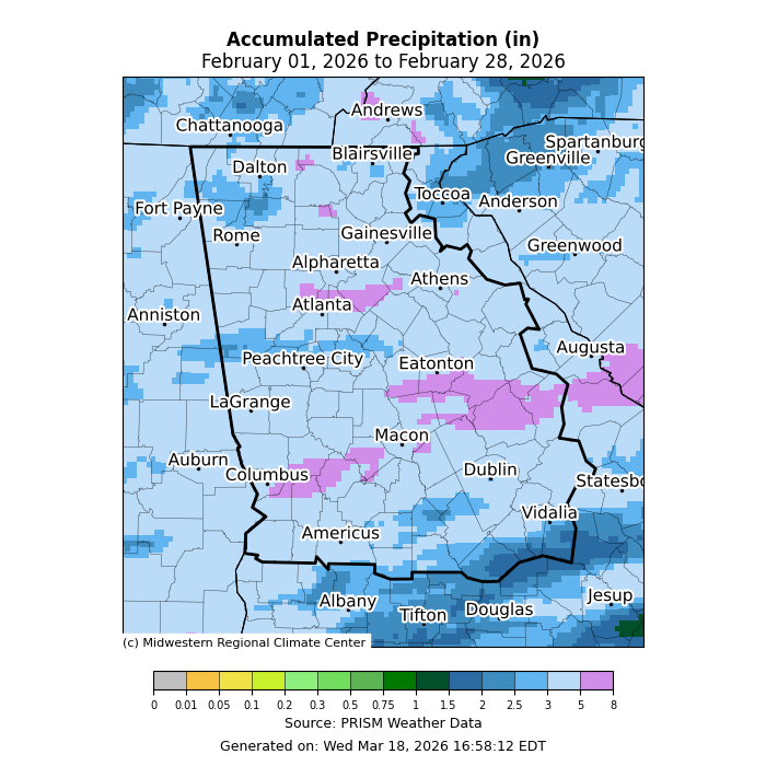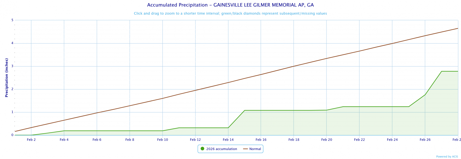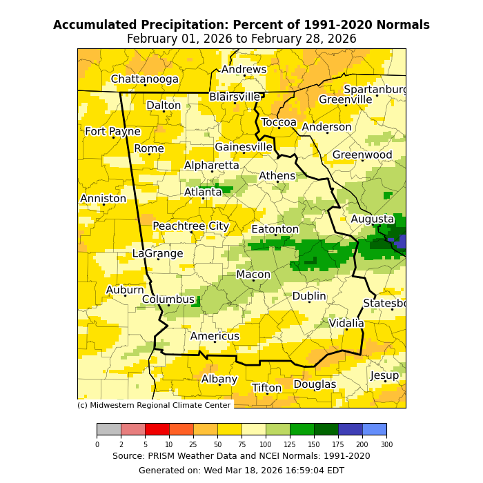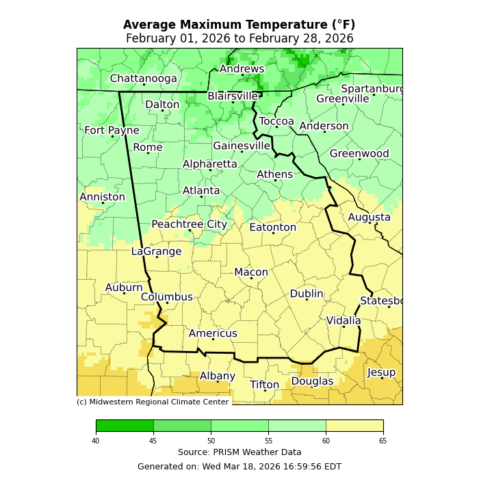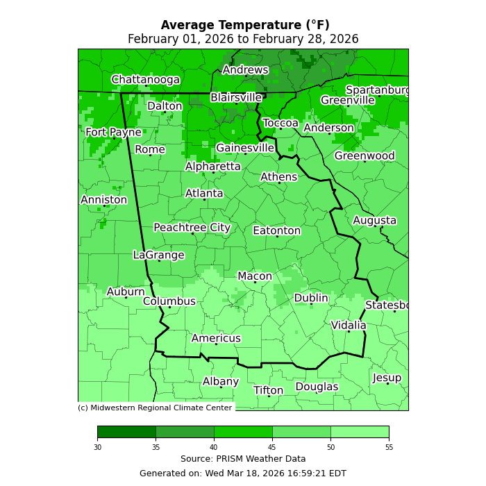 Click the links below to explore the temperature and precipitation data across north and central Georgia for the month of February 2026.