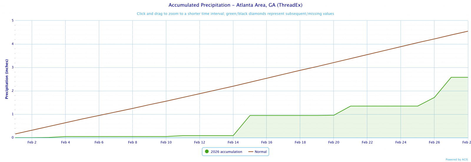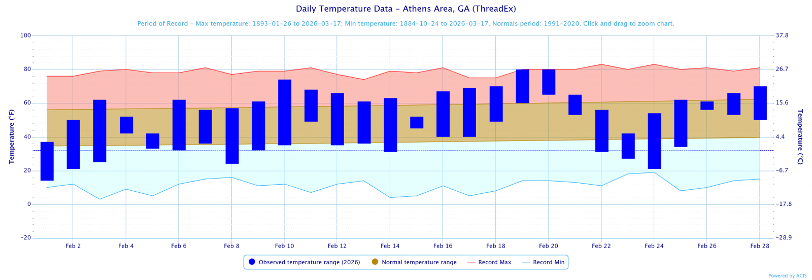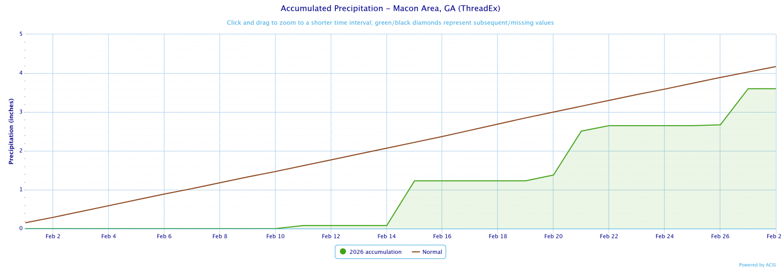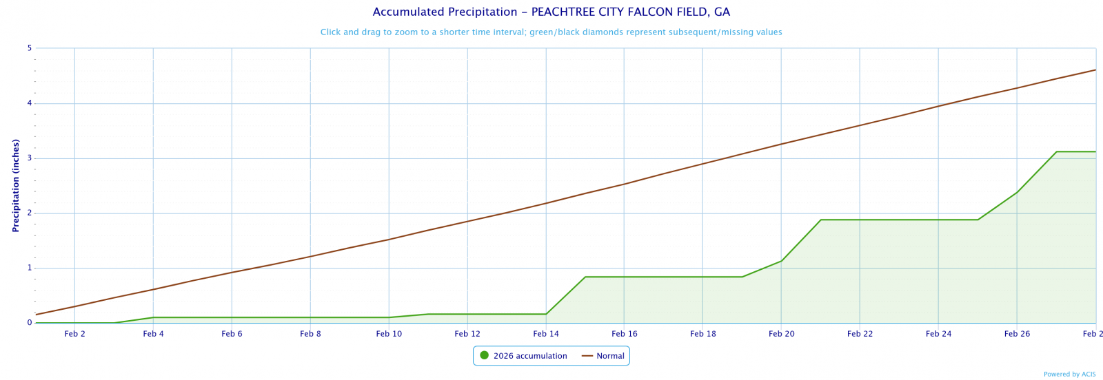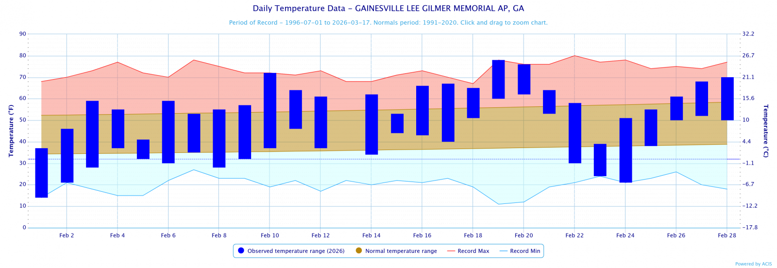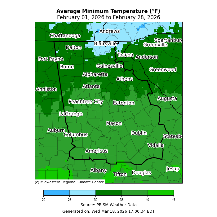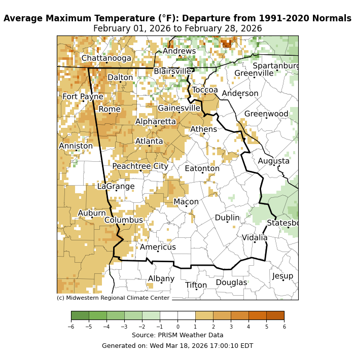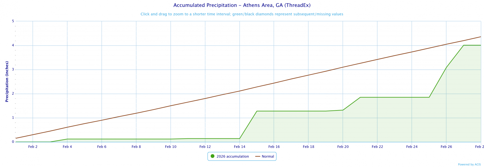 Click the links below to explore the temperature and precipitation data across north and central Georgia for the month of February 2026.
