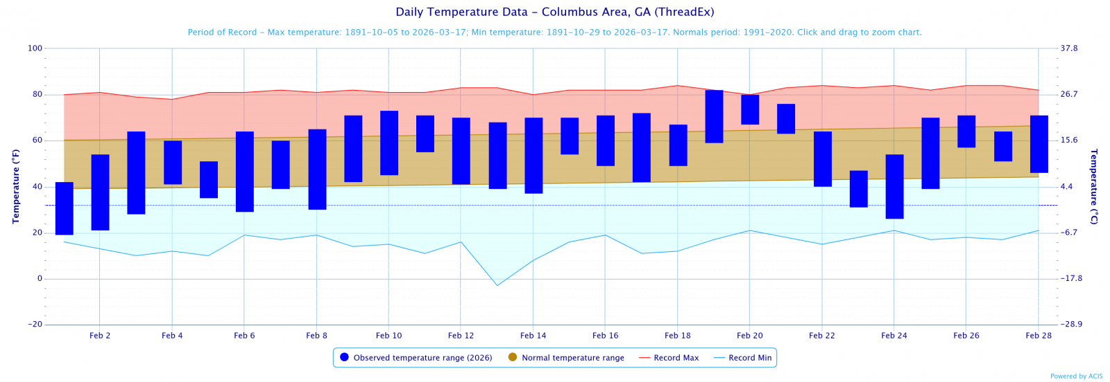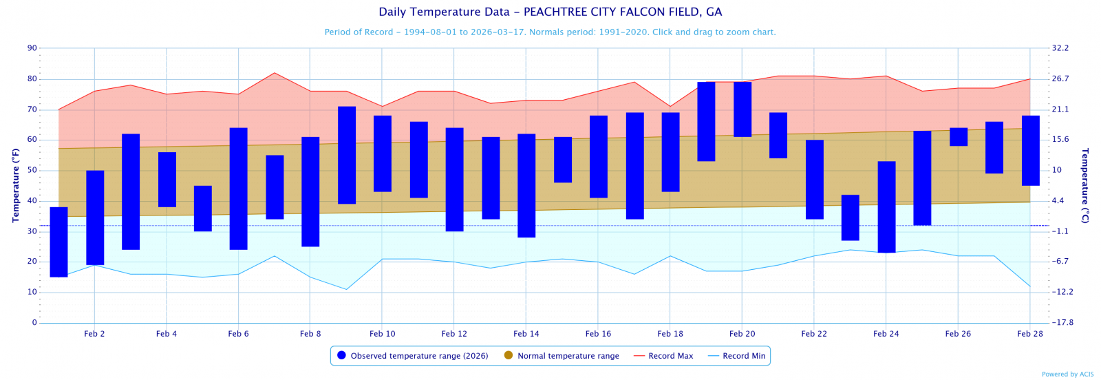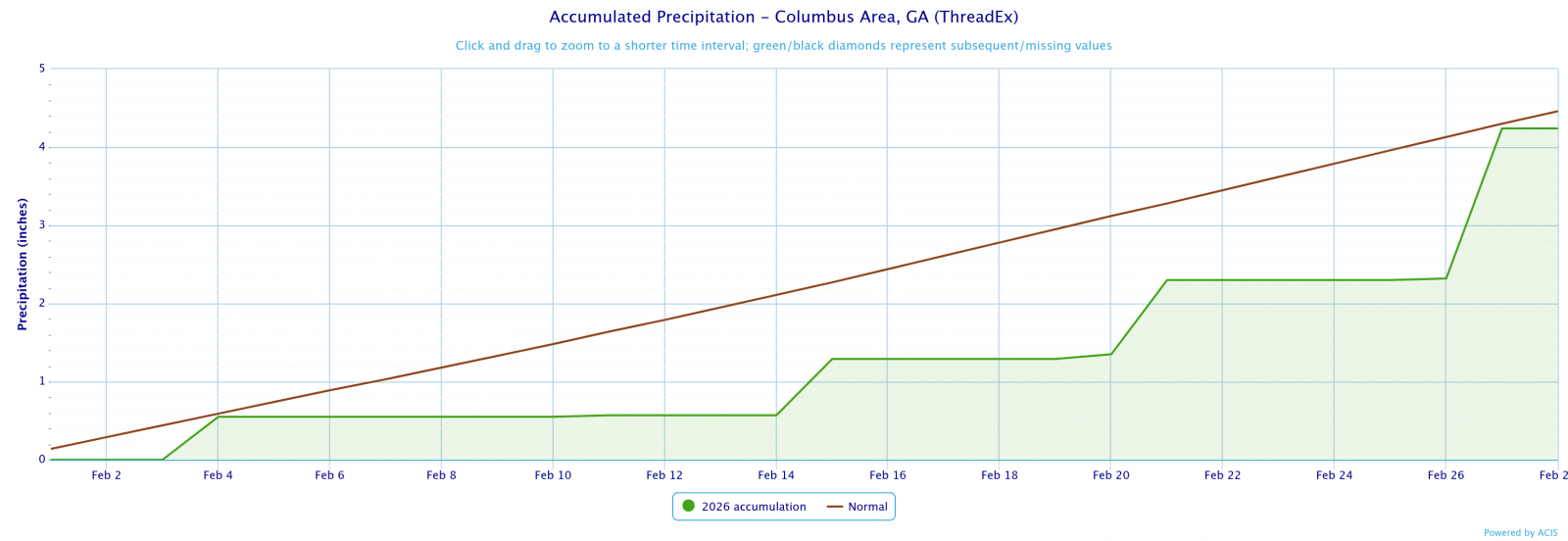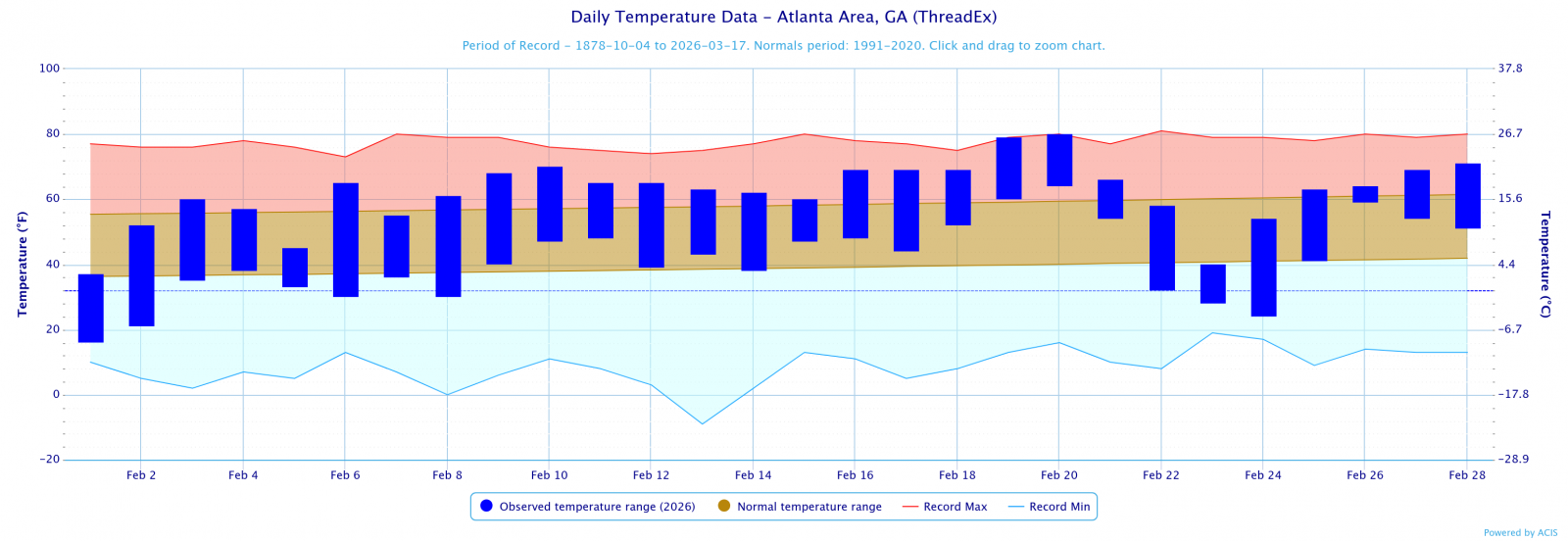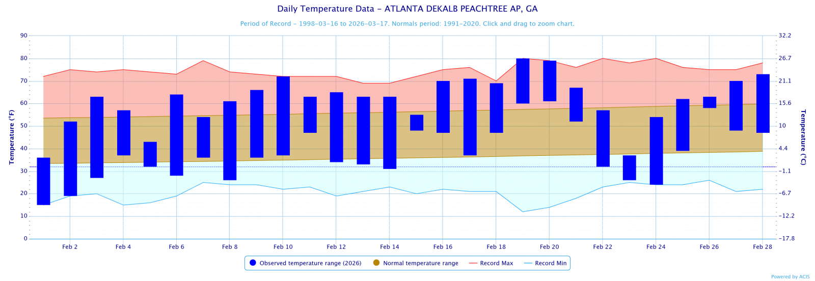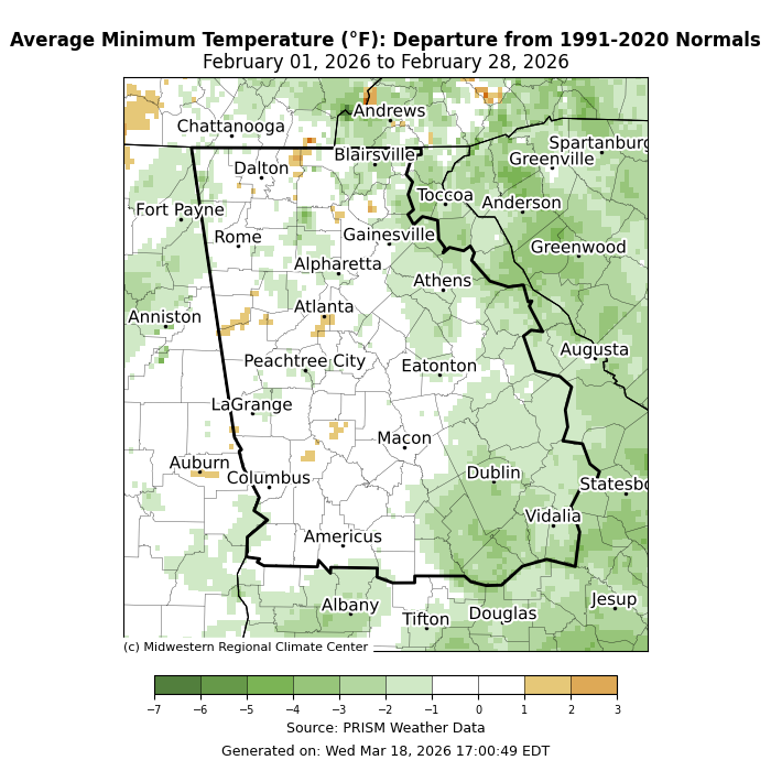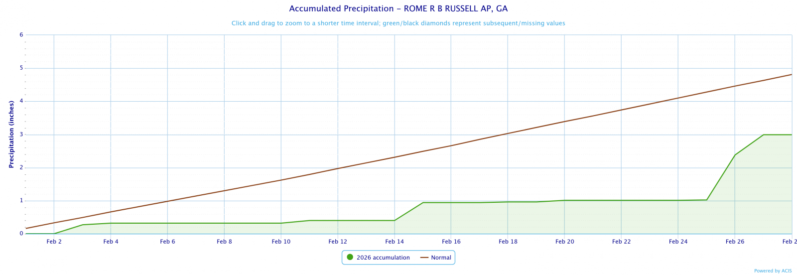 Click the links below to explore the temperature and precipitation data across north and central Georgia for the month of February 2026.