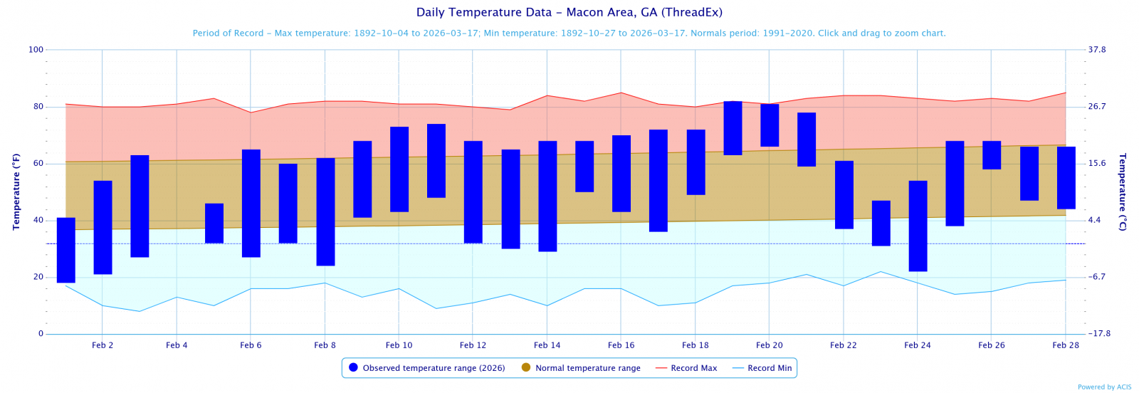 Macon reached 82°F which breaks the old record of 80°F set in 1986