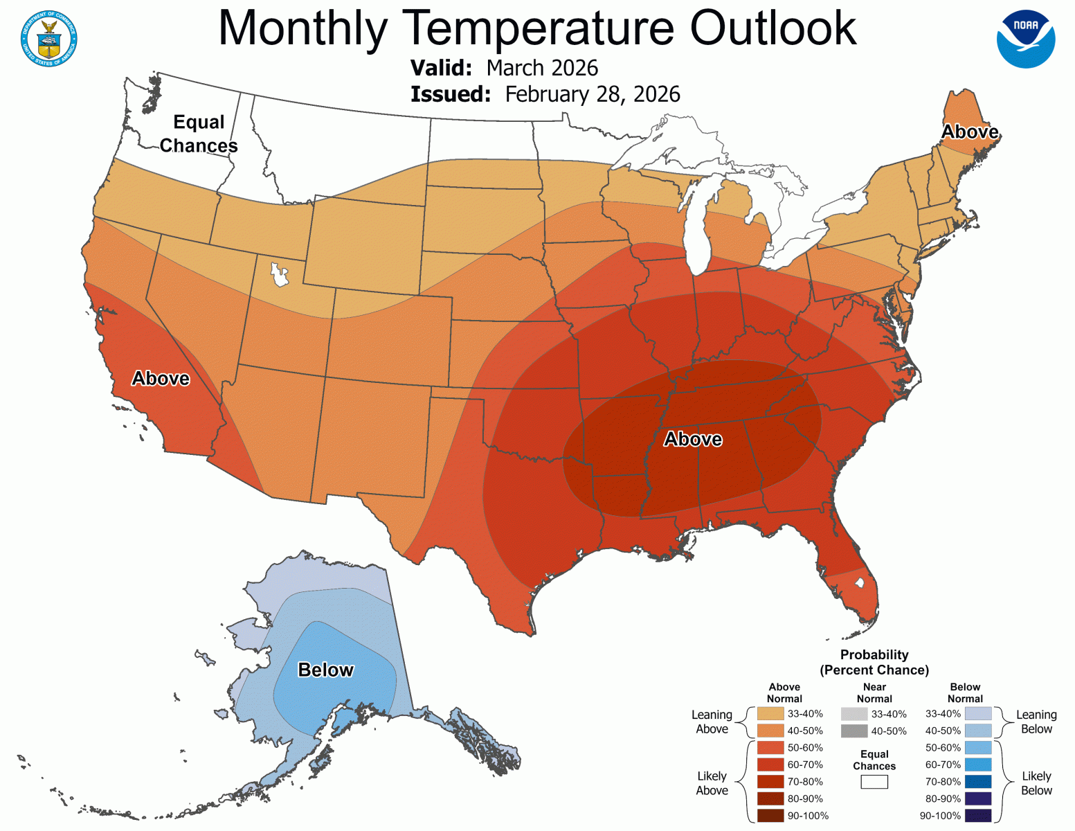 Temperatures through the month of February were two degrees above normal. Precipitation through the month of February was an inch below normal.