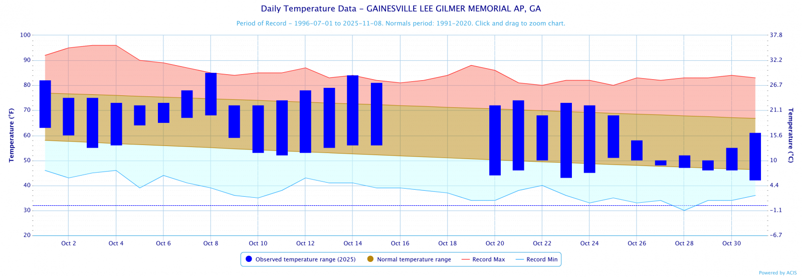Click the links below to explore the temperature and precipitation data across north and central Georgia for the month of October 2024.