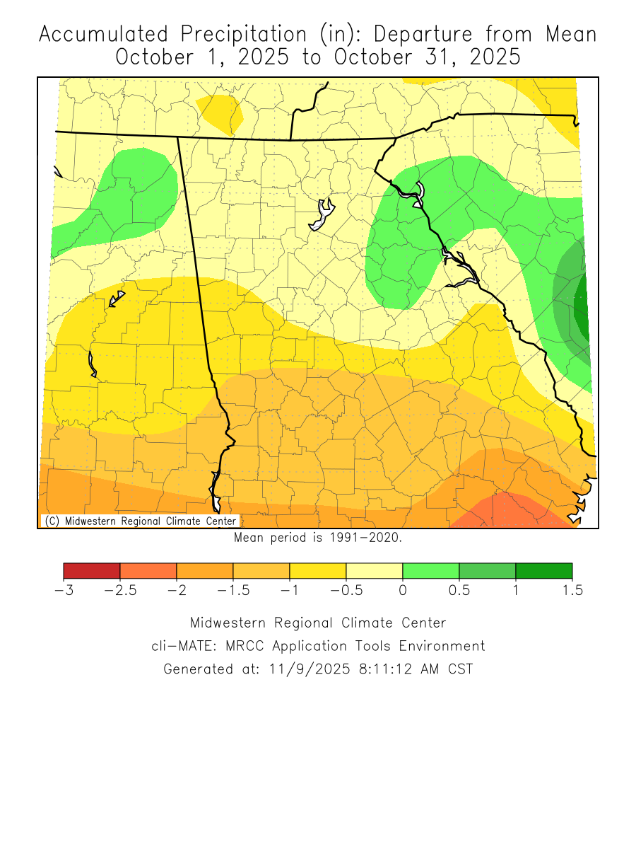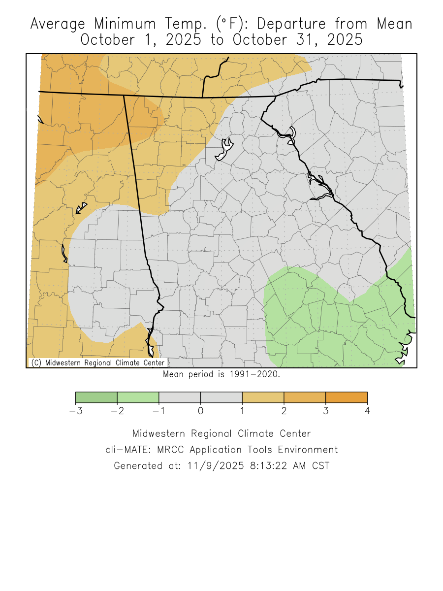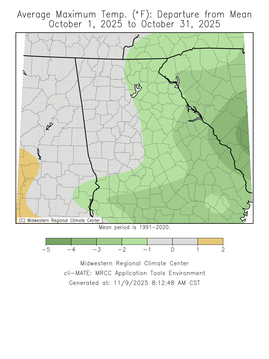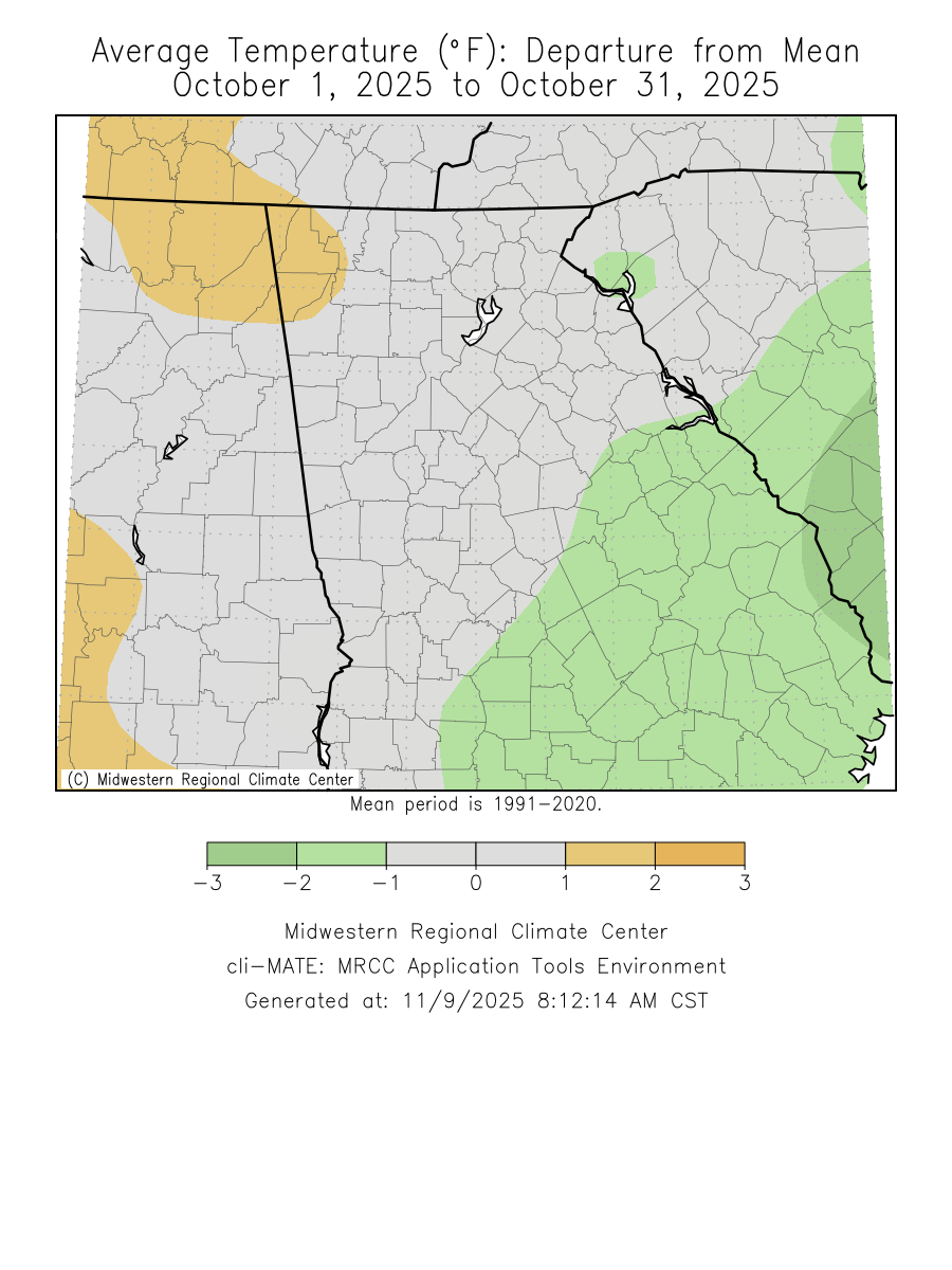 No significant weather events occurred across north and central Georgia this past October.