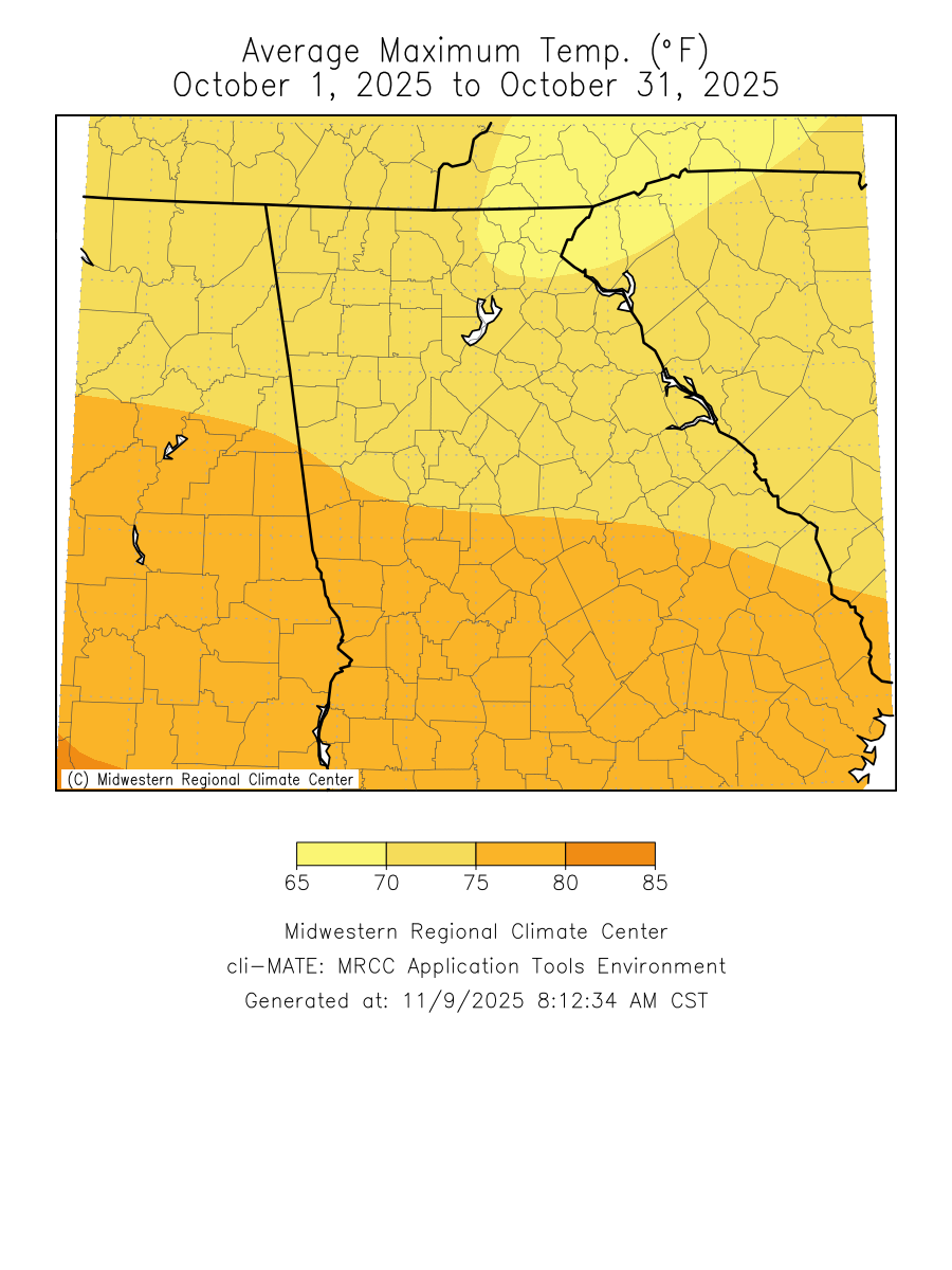 Temperatures through the month of October were around normal. Precipitation through the month of October was also around normal.