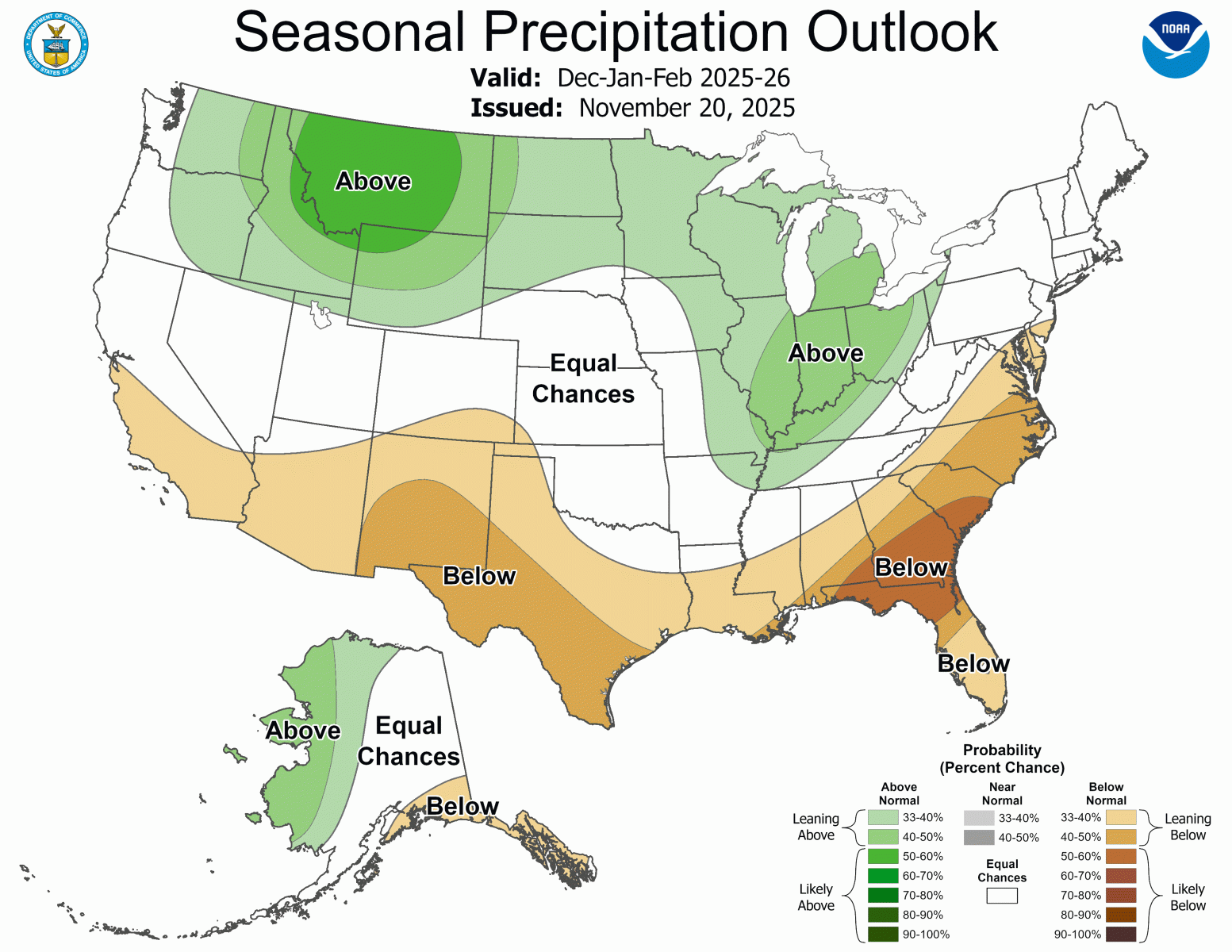 The current outlook from the Climate Prediction Center (CPC) is as follows: