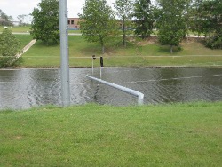 Several power poles near Wallace State Community College, near the town of Hanceville, were bent at their base.