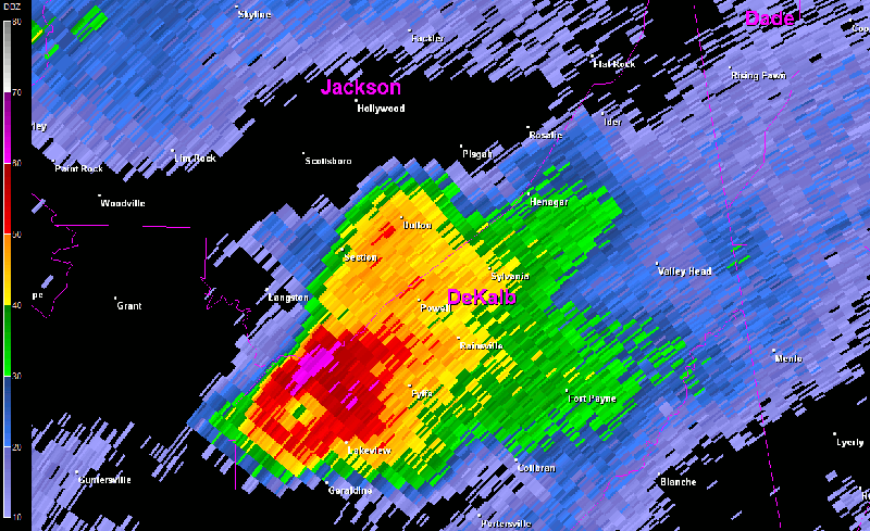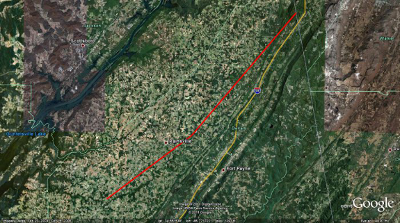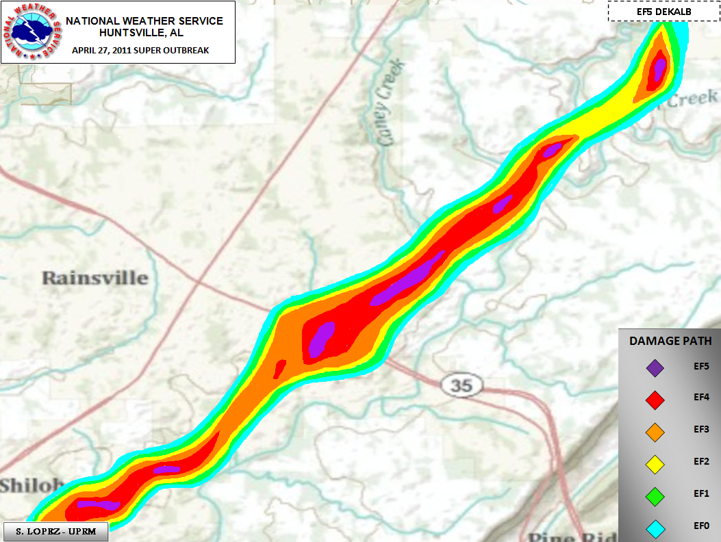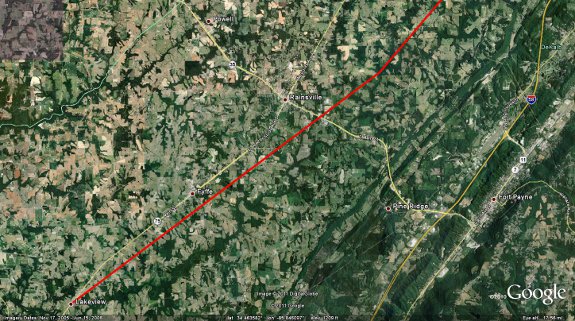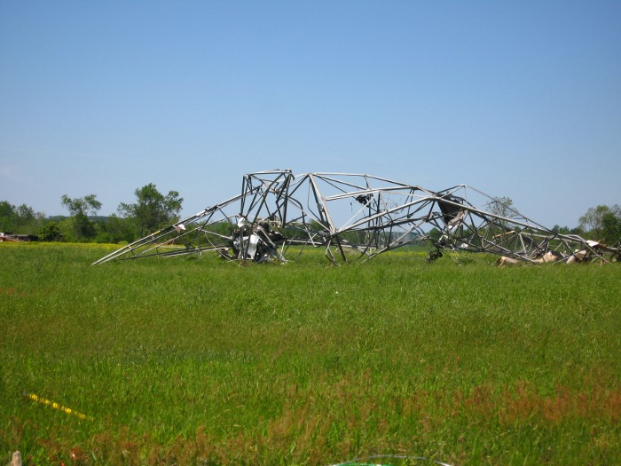 Farther to the northeast along County Road 112 just east of Sylvania and near the High Point community, a couple of electrical transmission metal truss towers were completely bent over and partially twisted. Several homes along County Road 112 were also completely destroyed with interior and exterior walls all collapsed, but portions of large debris remained nearby. Farther to the northeast, just south of the Ider community along County Road 17, the tornado width was estimated to be about one half mile. In this location, several homes were destroyed with exterior and interior walls all blown away while block and mortar foundations remained. Most hardwood trees were completely stripped and debarked in this area of damage. South of Cartersville and near the Blevins Mill community, trees were snapped and felled, but the damage path here was reduced to about 50 yards as the tornado appeared to weaken. The National Weather Service in Huntsville would like to extend thanks to the Emergency Management of DeKalb County, the state and county police, and other citizens, whom volunteered time and information during their cleanup efforts to help in conducting this storm survey.