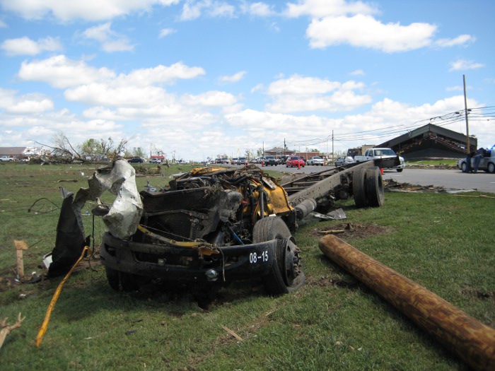 Slightly northeast along Lingerfeldt Road, numerous homes were leveled completely to their foundation with vehicles and debris strewn for hundreds of feet. Overhead photos and follow-up visual confirmation revealed a mangled vehicle tossed well into a ravine and resting up in the remainder of trees. At 1608 Lingerfeldt Road/CR 180 a large two story brick home was completely obliterated with several of the supporting anchors ripped out of the ground. A concrete porch was ripped off with pieces strewn up to 150 yards. A section of the asphalt driveway was pulled up. In addition, an anchored liberty safe weighing 800 pounds was pulled off its anchorage and thrown into a wooded area 600 feet away. When found, the safe`s door had been ripped open and completely off. A large pick-up truck at this residence was found mangled in pieces over 250 yards away in the same wooded area. The residents of the home survived in a nearby storm pit. Of note the storm pit was partially exposed by the tornado with dirt being sucked up and pulled away around the opening. Next door a mobile home was completely disintegrated. The residents of the mobile there also survived in a storm pit. This section of damage from Skaggs Road to Lingerfelt road near the intersection with Crow Lane was deemed to be EF-5 in intensity. It should also be noted that severe damage, near EF-5 in intensity was noted in a corridor from CR 515 through a neighborhood along County Road 441. In the east and south ends of the neighborhood, many one and two story homes were leveled to their foundation with debris scattered some distance. Several cars were thrown a large distance in this area. There was evidence of ground scarring as well as some sidewalk pavement pulled up in this location. However, some of the homes in this area appeared to be pushed off their foundation initially with limited anchorage. Thus, the damage was deemed high end EF-4 in this area.