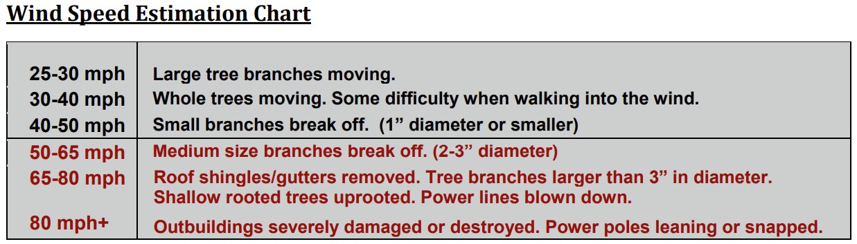 Note: Utilizing these items does NOT make you a trained spotter. These are intended as resource material only. If you have an interest in storm spotting please attend a spotter class in your area.