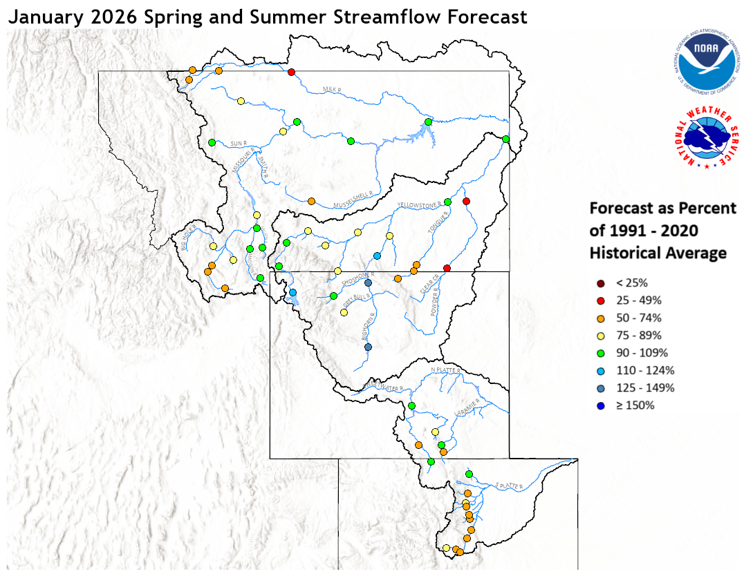 Upper Missouri January 1, 2026 Spring and Summer Streamflow Forecasts