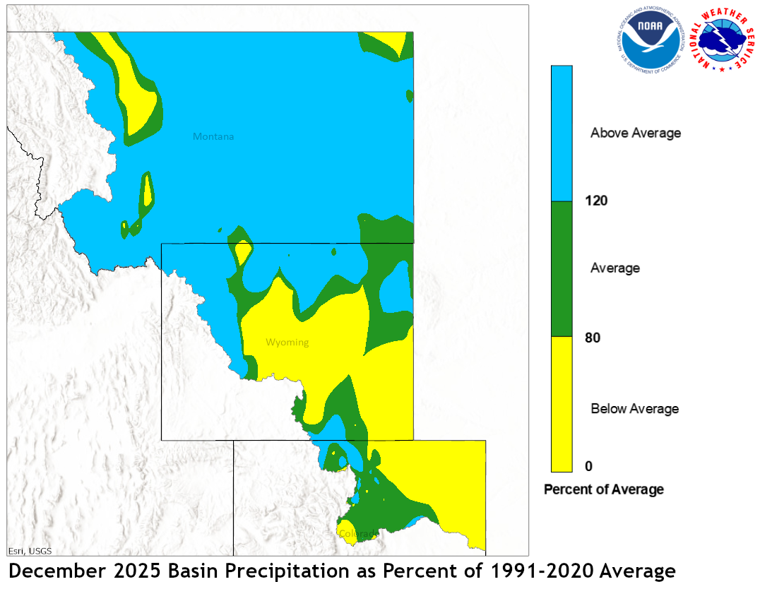 December precipitation across the Upper Missouri Basin was above average.