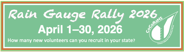 This is a community project. Everyone can help: young, old and in-between! Click here to sign up as a CoCoRaHS Volunteer Observer.