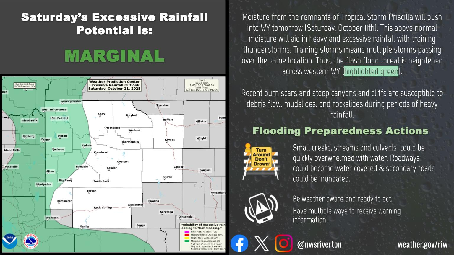 Unsettled weather is forecast this weekend starting Saturday morning. Above normal moisture will aid in periods of heavy and excessive rainfall in training thunderstorms. This could lead to flash flooding, especially across western WY! Stay weather aware this weekend!
