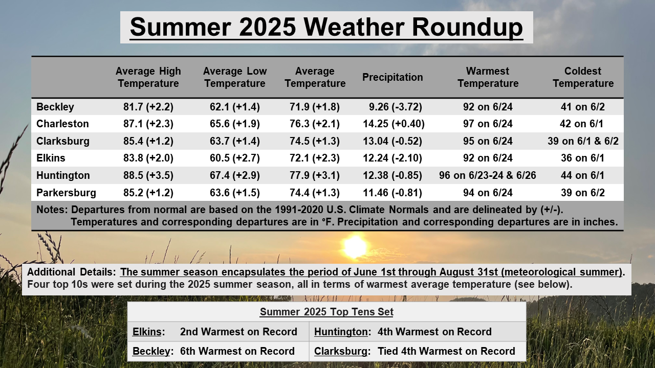 a very warm summer across the NWS Charleston forecast area. The summer season