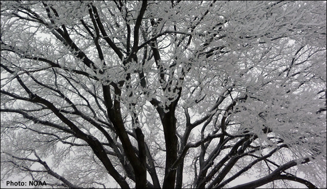 Tiny, supercooled liquid water droplets in fog can freeze instantly on exposed surfaces when surface temperatures are at or below freezing. Some surfaces that these droplets may freeze on include tree branches, stairs and rails, sidewalks, roads and vehicles. Extreme caution should be taken if travel is necessary. Freezing fog can cause black ice to form on roadways. Black ice is difficult to see and so particularly dangerous. Drive more slowly when you suspect icy conditions. For those flying, a thin layer of ice can form on aircraft, making flight very dangerous unless the aircraft is treated or has effective de-icing equipment.